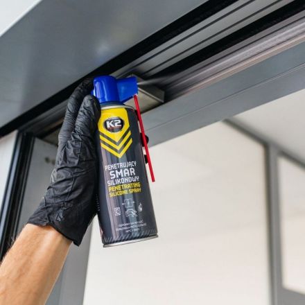 Silikon v spreju je produkt z zelo širokim spektrom uporabe. Uporabljamo lahko kot mazilo, sredstvo za popuščanje v plastični in gumarski industriji in ostalih panogah kot so kemična in prehrambena industrija. Preprečuje staranje in ohranja materiale kot nove. Preprečuje škripanje. Odlično prodira v površino skozi najmanjše pore v materialu. Vodo odporen in zato primeren za vse vremenske pogoje. Odličen artikel za industrijo, motosport, vzdrževanje vozil. Deluje hitro in učinkovito. Odličen kot mazilo za vsa gumijasta tesnila na vozilih (vrata). Preprečuje da v zimskem času vrata primrznejo na karoserijo! Preprečuje nastajanje korozije, preprečuje staranje gume in deluje kot globoko prodirajoče mazilo.